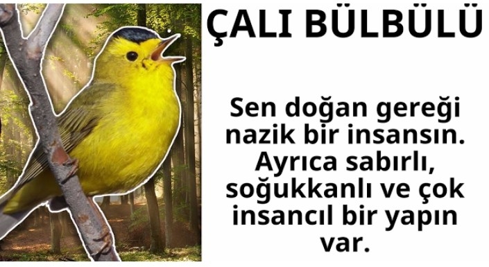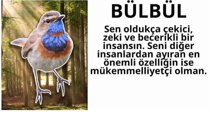 MAYIS Senin doğum kuşun “bülbül” Sen oldukça çekici, zeki ve becerikli bir insansın. Meraklı, öğrenmeyi seven yapın ile dikkat çekiyorsun. Kendine özgü davranışları olan oldukça doğal bir insansın. Ruhun her zaman gençtir ve insanlar seninle vakit geçirmeye bayılırlar. Ayrıca gizemli olan yapın ile her zaman dikkatleri üzerine toplarsın. Seni diğer insanlardan ayıran en önemli özelliğin ise mükemmelliyetçi olmandır. Şimdi sonucunu arkadaşlarınla paylaş!