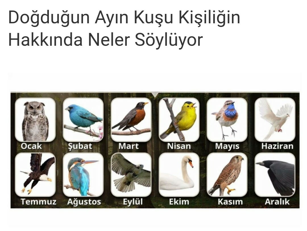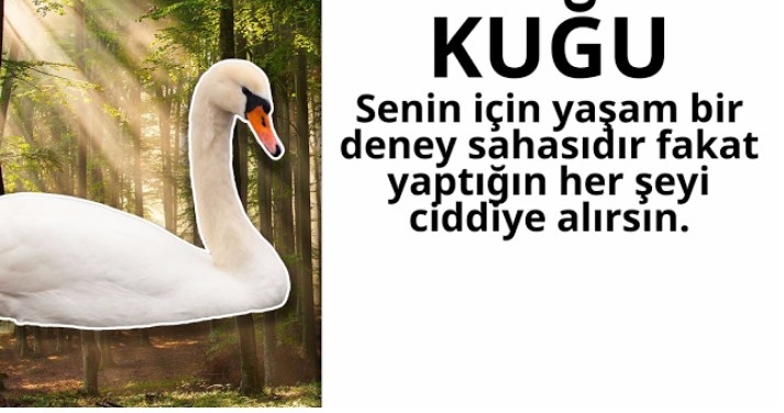 EKİM Senin doğum kuşun “kuğu” Senin için yaşam bir deney sahasıdır fakat yaptığın her şeyi ciddiye alırsın. Amaçlarını net bir şekilde belirler, elde etmek için elinden gelenin en iyisini yaparsın. Yaşama sıkı sıkıya bağlı, mücadeleci ve cesaretli yapın ile tüm dikkatleri üzerine çekmeyi başarırsın. Sevdiklerine sonuna kadar sadık ve bağlı bir insansın. Yapılan iyilikleri ve kötülükleri asla unutmazsın ve hayatını her zaman kontrol altında tutmak istersin. Şimdi sonucunu arkadaşlarınla paylaş!