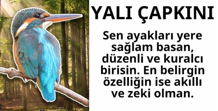 AĞUSTOS Senin doğum kuşun “yalı çapkını” Sen ayakları yere sağlam basan, düzenli ve kuralcı bir insansın. En belirgin özelliğin ise akıllı ve zeki olman. Hedeflerine çok bağlısın ve gerçekleştirene kadar elinden gelen her şeyi yaparsın. Ayrıca güven ve huzur veren bir insansın. Bu özelliğin ile çevrendeki insanlar için vazgeçilmezsin. Şimdi sonucunu arkadaşlarınla paylaş!