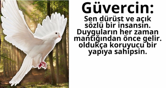 HAZİRAN Senin doğum kuşun “güvercin” Sen dürüst ve açık sözlü bir insansın. Duyguların mantığından önce gelir ve oldukça koruyucu bir yapıya sahipsin. Sen bağlanmayı seven, ailesine ve evine oldukça düşkün bir bireysin. Gülmeyi, eğlenmeyi çok seversin ve güçlü bir espri yeteneğine sahipsin. Bu özelliğin ile arkadaşların için vazgeçilmezsin. Şimdi sonucunu arkadaşlarınla paylaş!